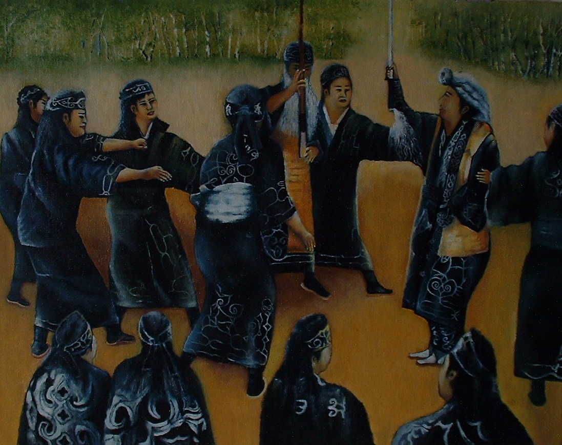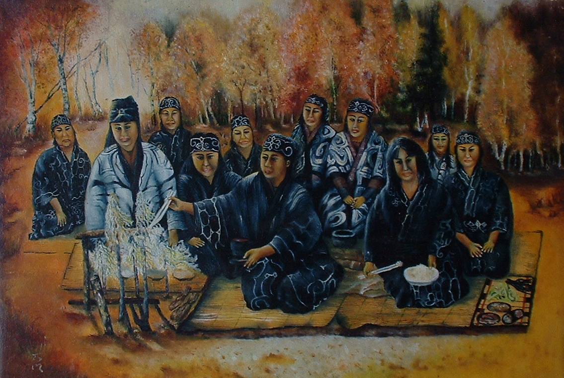 アイヌの鶴の舞 | アイヌの老夫婦 | クロユリとムッ クリを吹くメノコ |